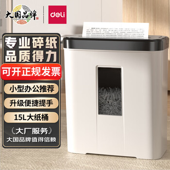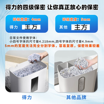 • 得力(deli)碎纸机 4级高保密 家用商用办公碎纸机 反向退纸碎纸机(单次5张 15L 持续5分钟 可碎卡)9939N