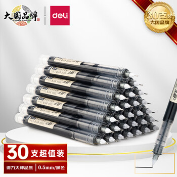 • 得力(deli)速干直液笔签字笔 0.5mm全针管学生中性笔 商务办公水笔走珠笔会议笔 黑色 30支/盒33788 开学文具