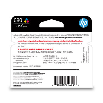 • 惠普(HP)680原装彩色墨盒 适用hp 2138/2677/3636/3638/3838/3776/3777/3778/4678/5078/5088打印机 墨盒
