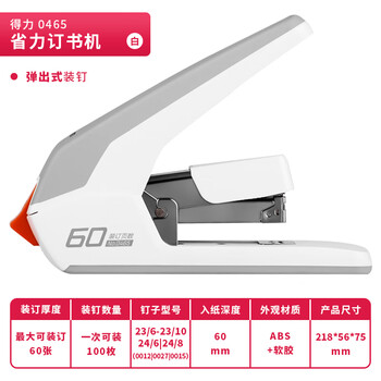 • 得力(deli)60页省力厚层大订书机/订书器 适配23/6~23/10订书钉 白色0465