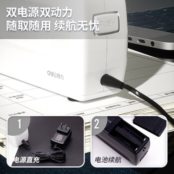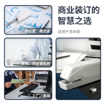 • 得力(deli)双电源电动订书机 电子自动装订订书器 适配24/6或26/6订书钉 办公用品 白色0489