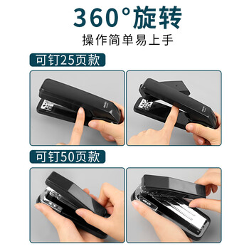 • 得力(deli) 可旋转订书机学生用大号钉书机多功能办公用订书器家用定厚书省力重型加厚订中缝起订装订 360°旋转可订50页【蓝】+5盒共2500枚钉