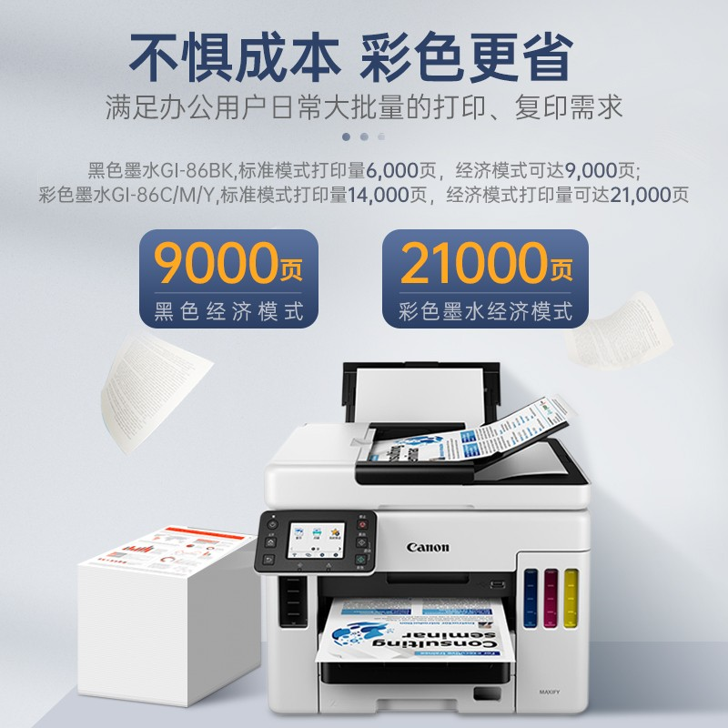 • 佳能(Canon)GX7080 商用连供彩色喷墨 无线Wifi 打印机一体机 传真/双面打印/双面复印/双面扫描 A4幅面