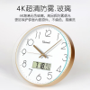 • 天王星(Telesonic)挂钟客厅万年历钟表3D立体创意双日历温度时钟简约石英钟薄边挂表 奢时金35CM日历款