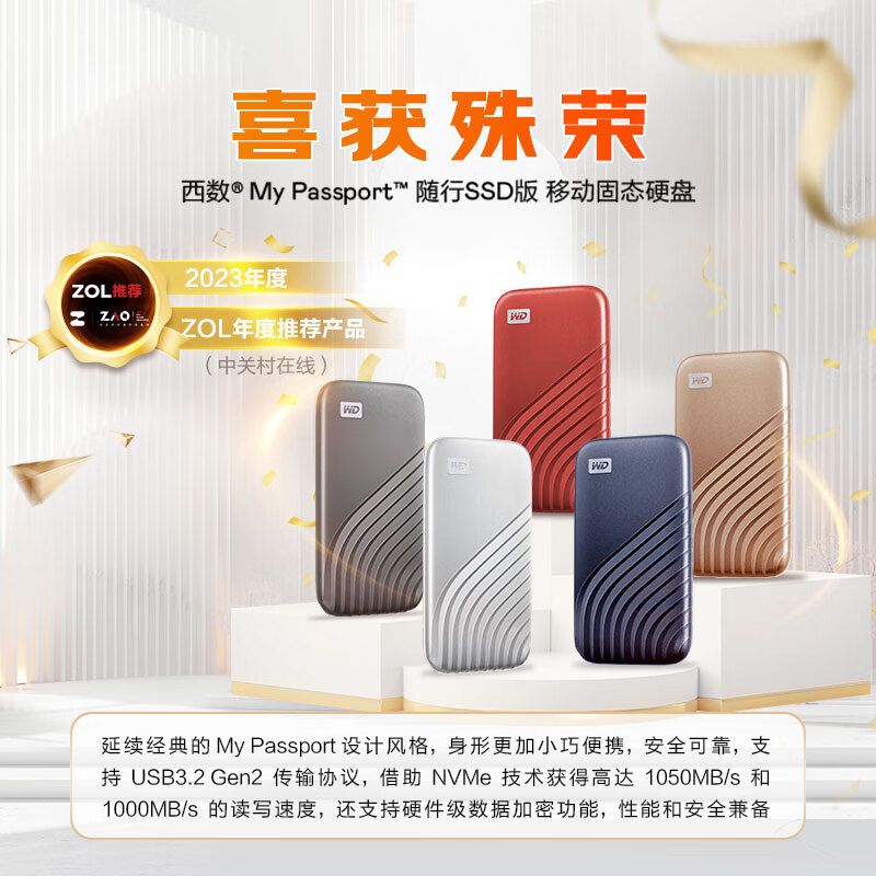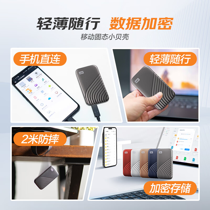 西部数据(WD)2TB NVMe 移动固态硬盘(PSSD)My Passport随行SSD type-c接口 1050MB/s 手机直连笔记本外接