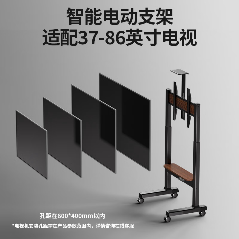• 电视移动支架32-86英寸通用电动升降电视机落地支架可移动不锈钢/木纹带轮电视挂架电视