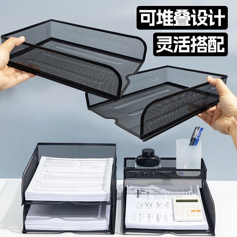 • 晨光(M&G)金属文件框栏文件篮文件托盘书立多层办公桌面档案收纳盒文件筐铁资料整理置物架五层黑色
