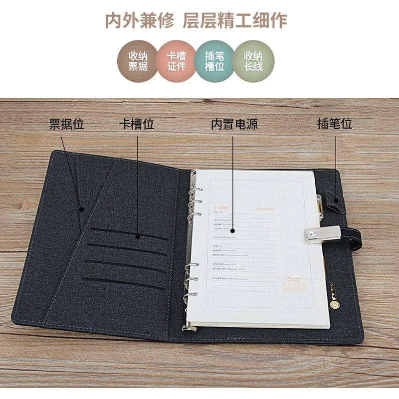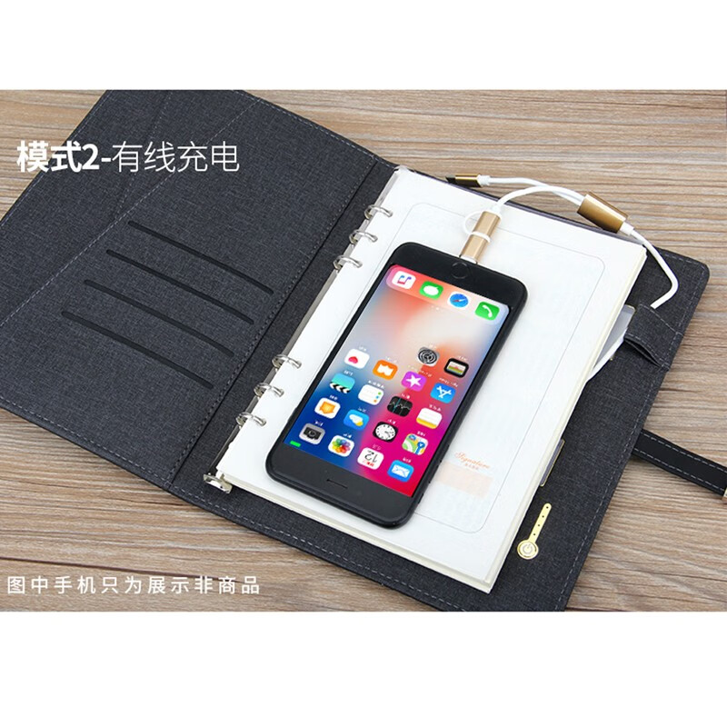 • 格立特(gelite) 多功能无线充电笔记本子带u盘会议记录本记事本商务笔记本文具带充宝功能定制定做 无线+有线充 32G优盘+8000mAh 黑色