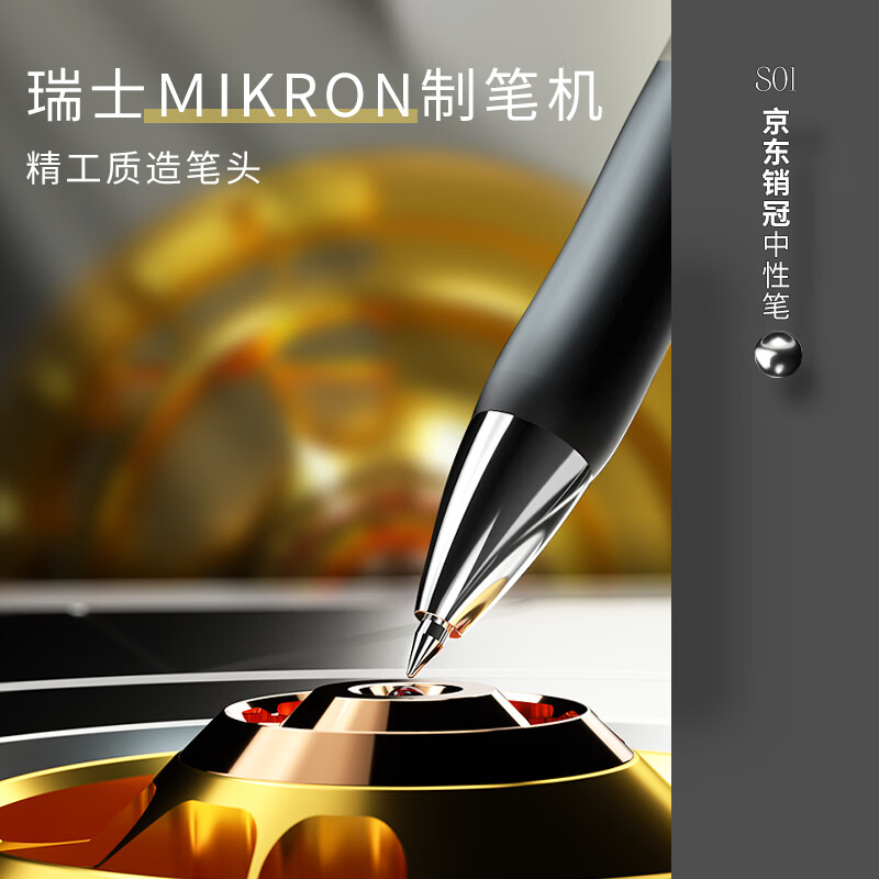 • 得力(deli)S01中性笔签字笔 0.5mm子弹头经典办公按动笔水笔 黑色 12支/盒