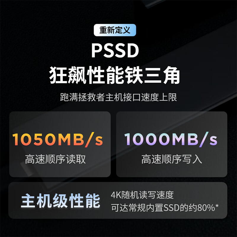 联想 拯救者移动固态硬盘 (PSSD)1TB Type-C USB 3.2 Nvme传输1050MB/s高速SSD双接口 手机电脑