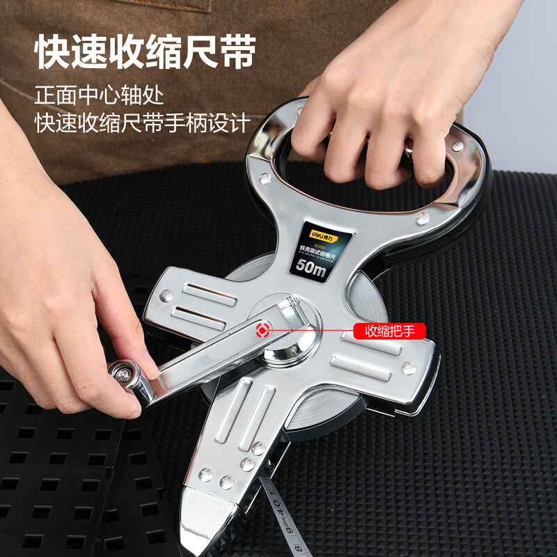 • 得力(deli)金属外壳架式手提插尺钢卷尺工程测量尺子50m*12.5mm